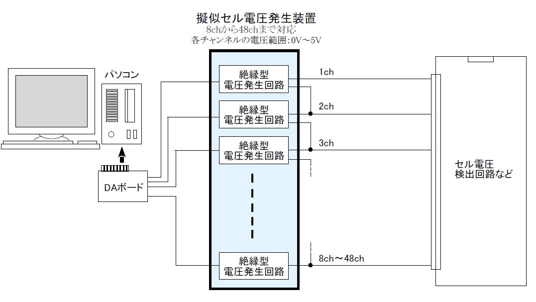 リチウムイオンバッテリーのセル電圧を擬似的に発生させる装置です。 |